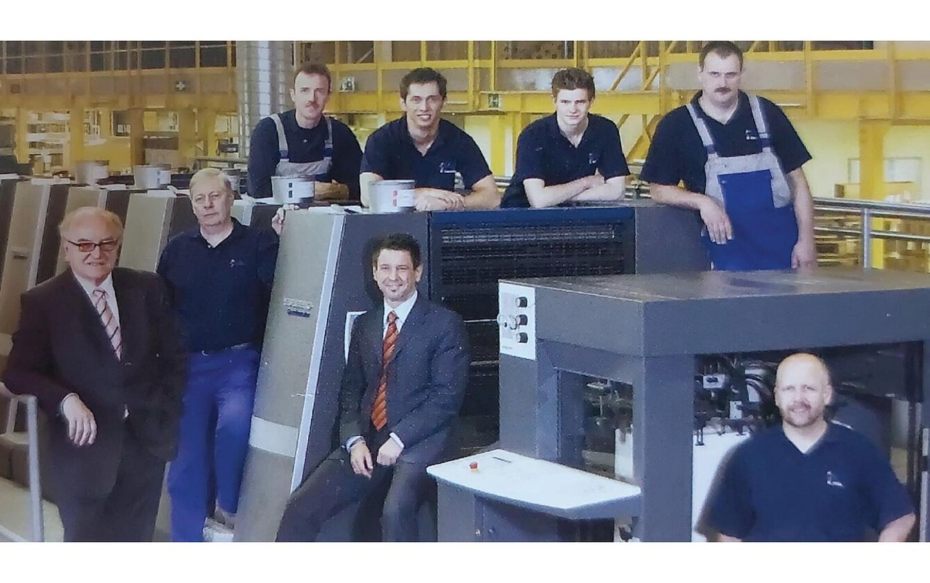Dank der großen Unterstützung von Unternehmen aus der Region und unseren tapferen Mitarbeiterinnen und Mitarbeitern, konnte unsere Firma auch diese Krise durchstehen: So durften wir zum Beispiel die Maschinen umliegender Druckereien während der Nacht verwenden - damals hatte sich die Nachtschicht noch nicht überall etabliert - um in jedem Fall fristgerecht unsere Kundenaufträge ausliefern zu können.
