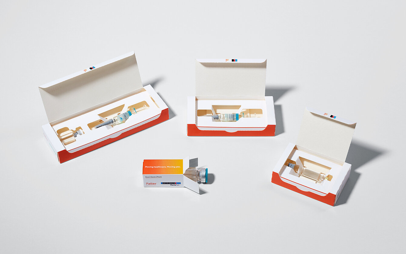 - Both components, folding carton and inlayer, are produced at Faller (product handling is a compact unit)