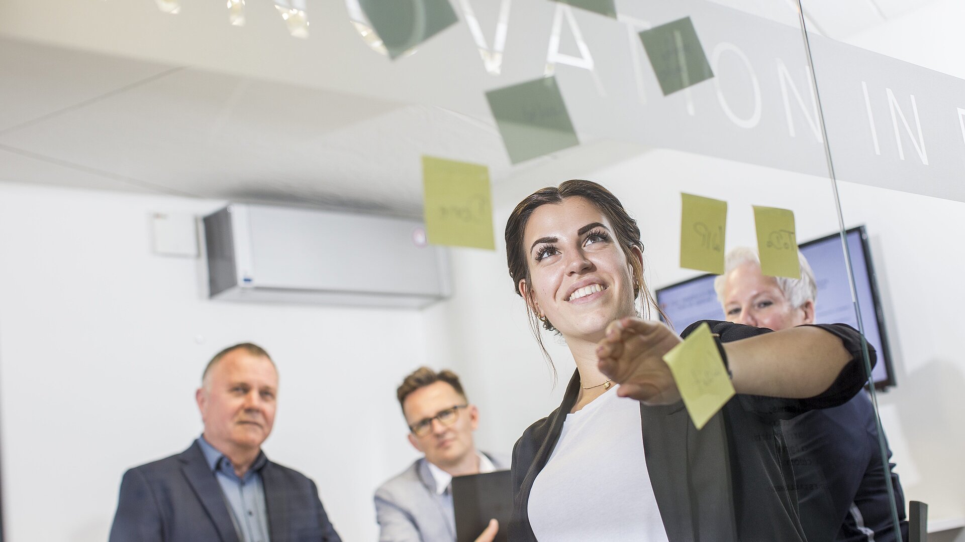 Im PIP kommen Methoden aus den Bereichen Design Thinking, Lean Management, Scrum und Business Model Innovation zum Einsatz. Diese unterstützen die Teams bei der Entwicklung neuer Produktideen und helfen dabei, die richtigen Fragen zu stellen. Denn es gilt, die vier Kriterien des Modells – Umfeld, Interesse, Machbarkeit, Rentabilität – zu prüfen. Umfeld bedeutet: die Idee wird intern sowie extern auf Relevanz kontrolliert. Durch genaue Überprüfung des Interesses wird festgestellt, ob die Idee gebraucht wird. Machbarkeit stellt sicher, dass diese rechtlich und technisch umsetzbar ist, die Rentabilität beschreibt die wirtschaftliche Profitabilität der Innovation. „Für eine erfolgreiche Entwicklung müssen wir alle vier Kriterien betrachten und in eine Balance bringen. Wo sich dieses Quartett überschneidet, liegt der sogenannte Innovation Sweet Spot“, erklärt Löffler. „Diesen gilt es zu treffen, um sicherstellen zu können, dass wir die Produkte und Services nicht an den Bedürfnissen unserer Kunden vorbei entwickeln.“