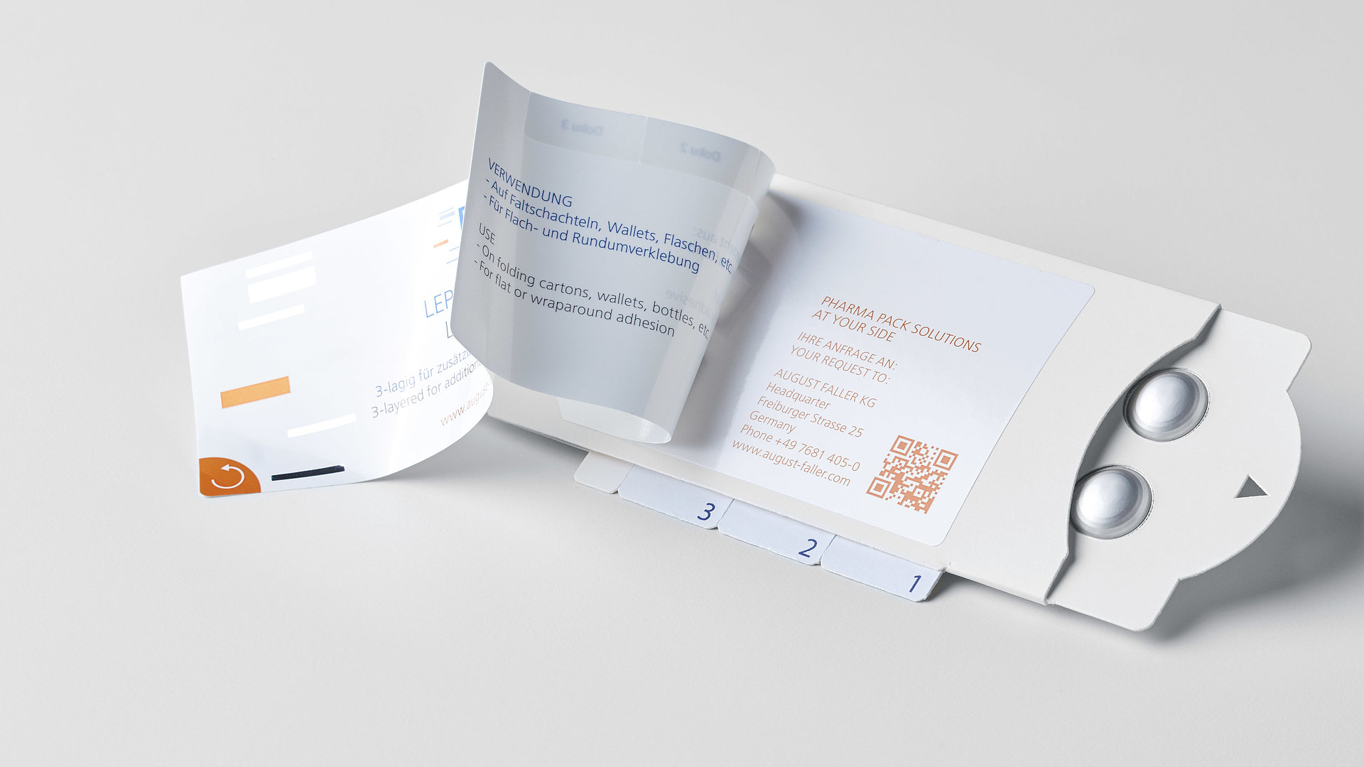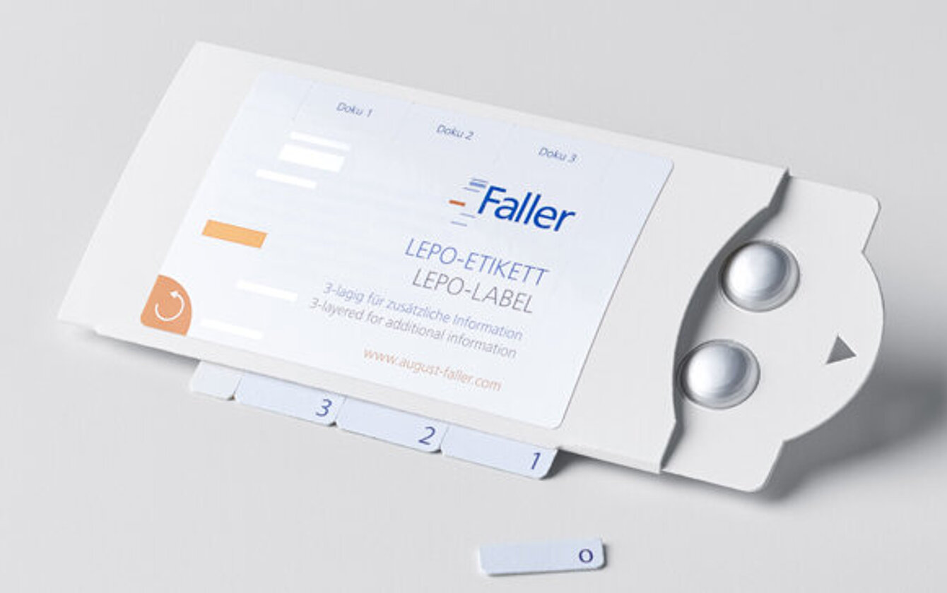 Through the selective tearing-off of the perforated tabs, the blister can be pulled out only in “doses”, thus releasing to the patient only the tablets intended for this medication period. With the integrated five-sided Lepo-Label, the same surface presents even more space for patient information. A static coating prevents dirt from adhering to the sides, thus ensuring resealability. Part labels help with appointment reminders and documentation in patient records.